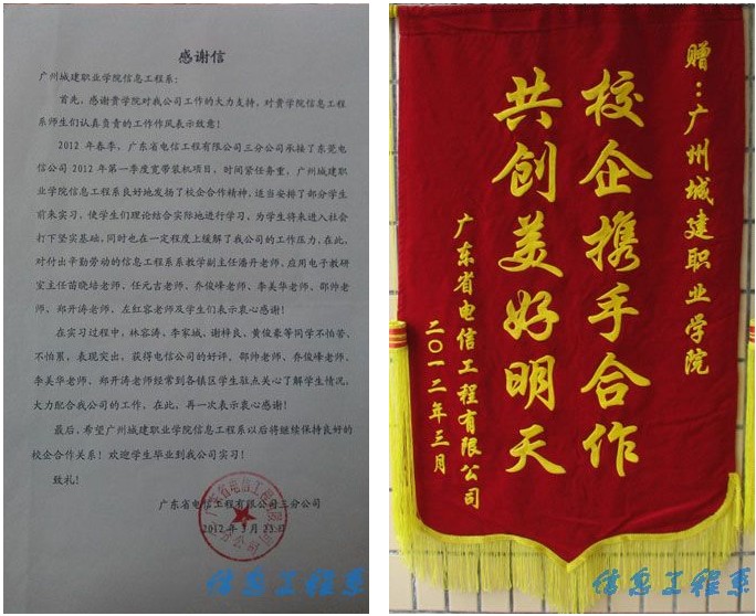 广东省电信三分公司向公司信息系发来感谢信和锦旗