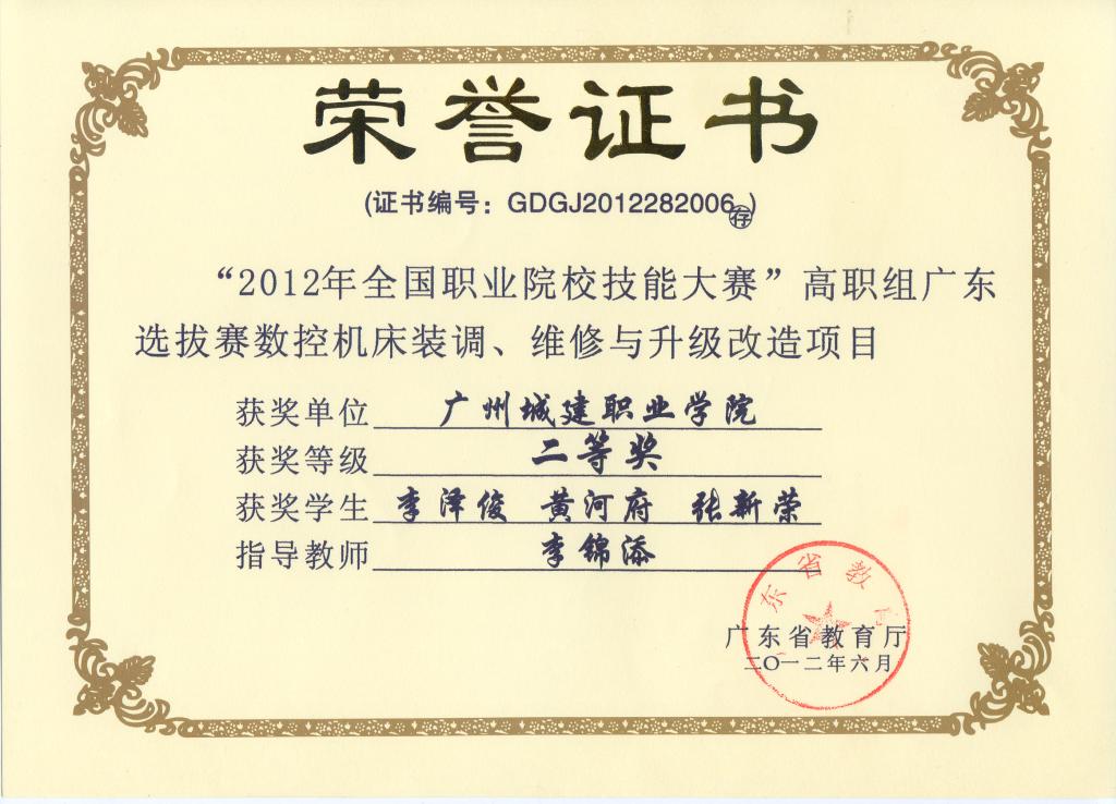 省数控装调维修大赛二等奖