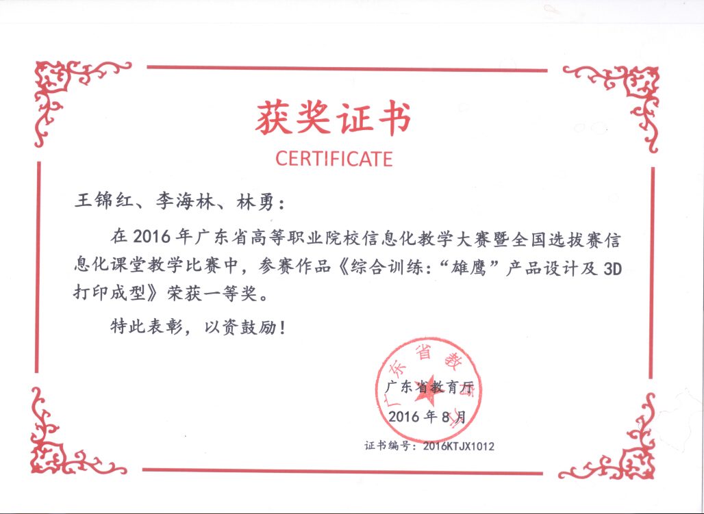 王锦红等喜获广东省高等职业院校信息化教学大赛暨全国选拔赛信息化课堂教学比赛一等奖