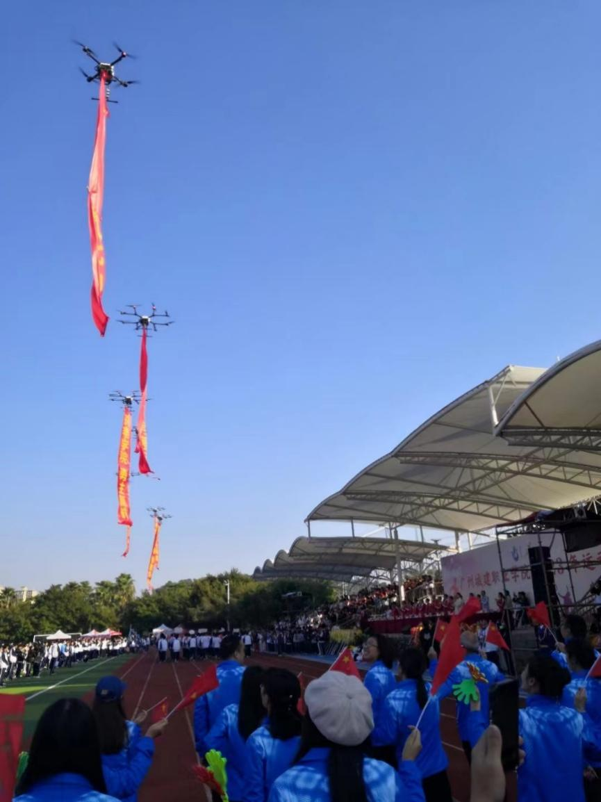在11月24日公司举办的校运会开幕式中,伟德国际1946亚洲版无人机技术团队,围绕“机电改变世界,智造引领未来”的主题,在田径场上空飞行一只萦绕的凤凰。并同时升空7架大型无人机与20余架小型无人机集群编队,通过展示条幅和矩阵飞行把科技与艺术完美结合,为公司师生呈现了一场闪耀的无人机秀,以动态的立体画面展现出公司无人机应用技术专业发展的实力与风采。
