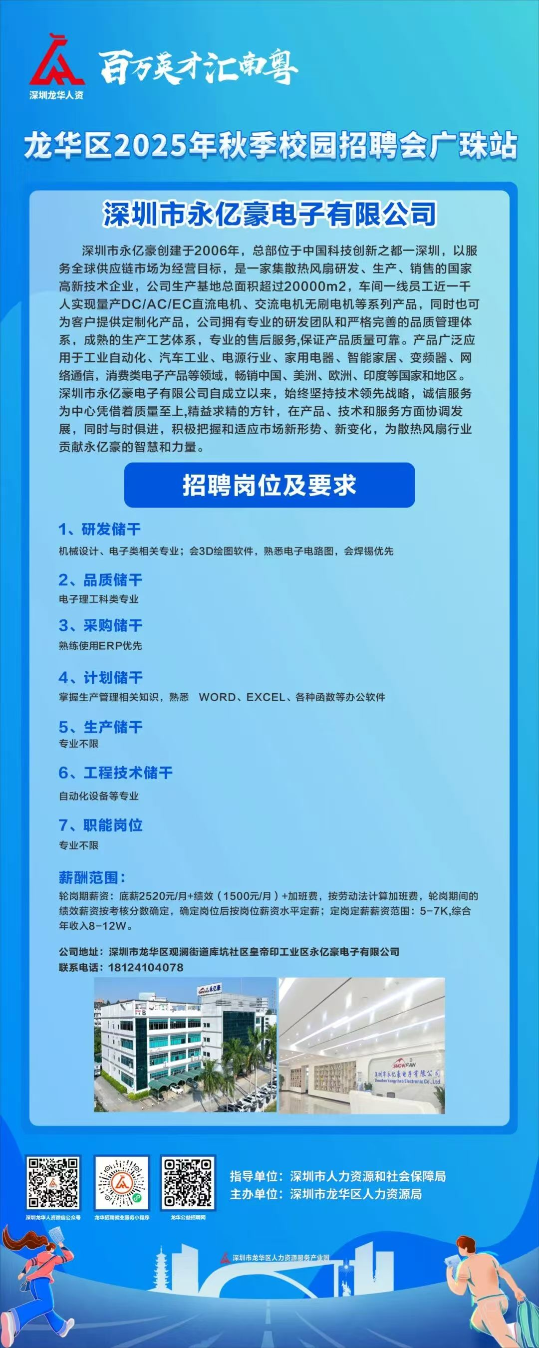 深圳市永亿豪电子有限公司成立于2006年,总部位于中国科技创新之都——深圳。公司以服务全球供应链市场为经营目标,是一家集散热风扇研发、生产、销售为一体的国家高新技术企业。企业生产基地总面积超过2万平方米,一线员工近千人,具备DC/AC/EC直流电机、交流电机、无刷电机等系列产品的量产能力,同时可根据客户需求提供定制化产品方案。公司拥有专业的研发团队、完善的品质管理体系、成熟的生产工艺流程及优质的售后服务体系,产品广泛应用于工业自动化、汽车工业、电源行业、家用电器、智能家居、变频器、网络通信及消费类电子等领域,远销中国、美洲、欧洲、印度等国家和地区。