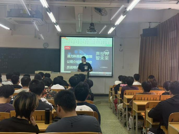 TCL通力科技的招聘负责人详细介绍了关于概况及其在全球智能科技产业中的地位。作为智能终端和电子设备领域的领军企业,TCL通力科技不断推动技术创新,在智能家居、人工智能、大数据等前沿领域积累了丰富经验。讲师们特别强调了TCL通力科技在推动“绿色智能”方面的成就,展示了公司致力于可持续发展的长远规划。通过视频展示、互动环节和案例分享,同学们对TCL通力科技的企业文化、发展历程及社会责任有了更深入的了解。