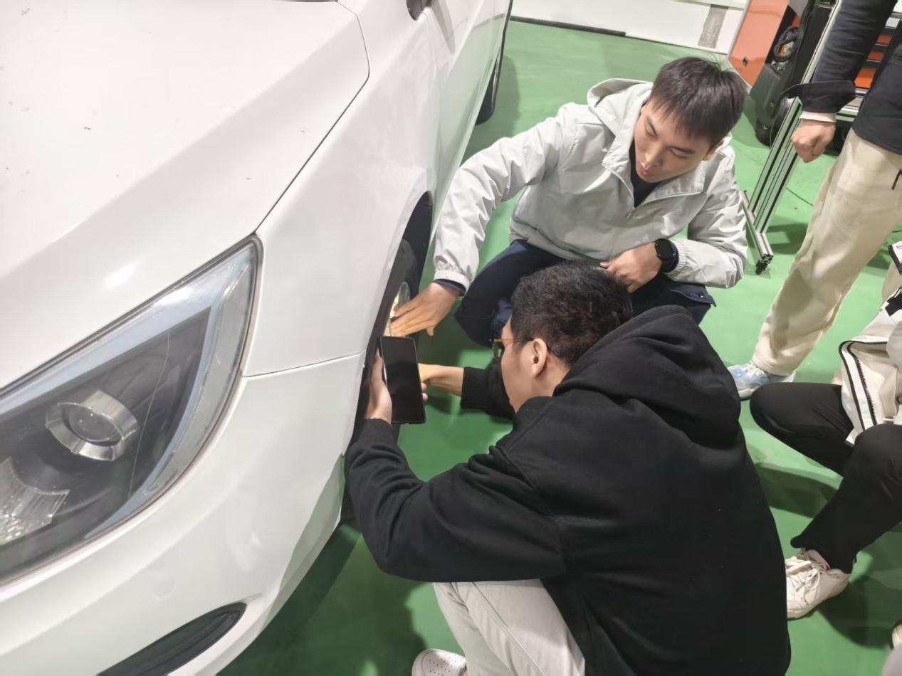 针对同学们最关心的日常养护问题,林老师重点介绍了轮胎胎压检测、机油更换周期、车漆护理等实用知识,特别提醒大家夏季高温需注意防冻液液位,冬季低温要及时检查电瓶状态。现场,他还拿出机油样本、滤芯配件,直观对比不同品质产品的差异,教大家通过观察颜色、辨别气味判断油品好坏。本次课程直观上让同学们了解到汽车养护的基本知识,不少同学主动上前近距离观察配件细节。在帮助同学们学习到养护知识的同时,让同学们观看并且主动上手的这个过程,是理论与实践相结合的体验,帮助同学们更好的理解汽车养护。