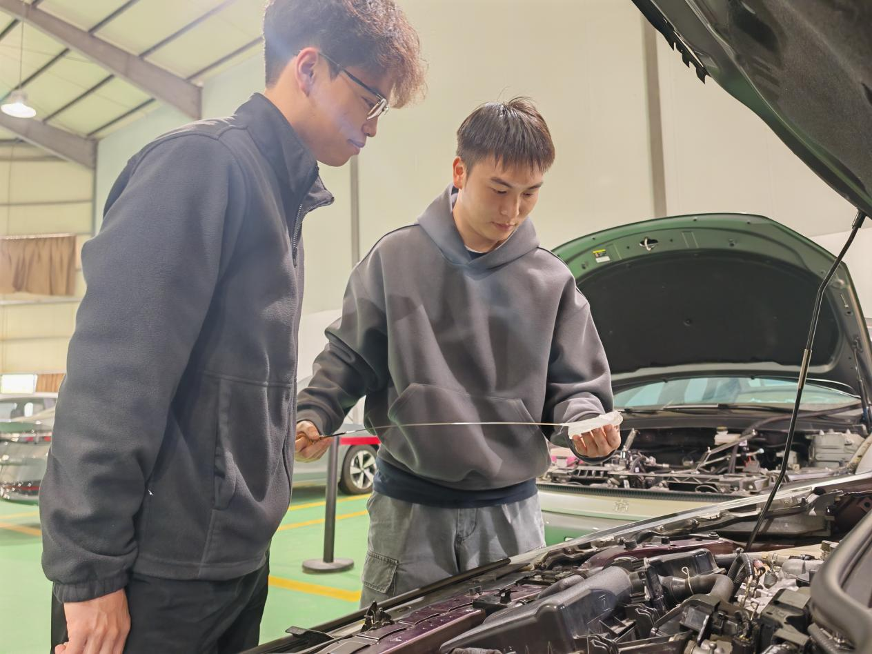 针对同学们最关心的日常养护问题,林老师重点介绍了冷却液加注的注意事项、机油检查方法、制动液更换周期等实用知识。现场,他教大家把机油滴在吸油纸上,观察“光环扩散”现象,并且通过机油气味辨别油品好坏。本次课程让同学们了解到汽车养护的基本知识,不少同学主动动手自己操作检测。把“看会”变“上手”——先让知识过脑,再让双手记忆,边学边做,汽车养护的门道才真正被身体“读”懂。