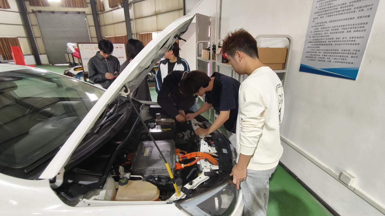 随后,林业铭老师现场示范如何检查前照灯的照射距离与角度、测试制动信号灯,并手把手教同学们更换卤素灯泡。大家围拢上前,边观察边操作,在“做中学”的过程中,把原本抽象的知识变成了看得懂、记得牢的实操经验。