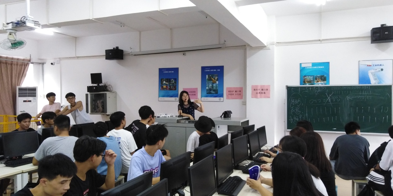 安娟老师在3A-301工业机器人实训室进行实训室介绍