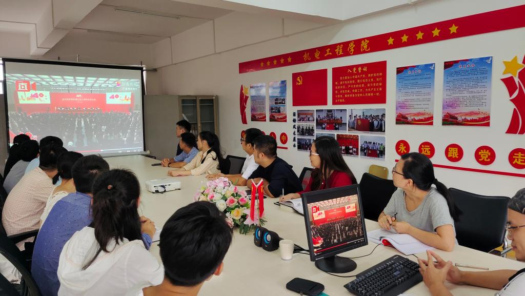 10月14日,公司党总支在建工机电楼305A开展《深圳经济特区建立40周年庆祝大会》直播视频观看学习活动。党总支副书记李奕萍和师生党员参加了此次学习活动。