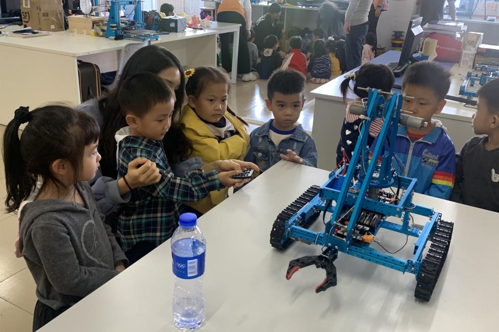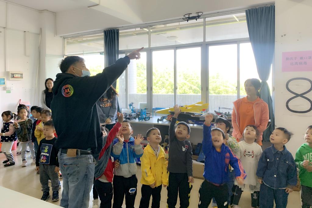 孩子们手拉手兴高采烈的来到展厅,宽敞明亮的教室,整齐的课桌,琳琅满目的科技产品深深吸引了他们的目光。经理王锦红生动地讲解了许多科学小常识,科技产品的使用方法,特别是现场展示无人机给孩子们留下了深刻的印象,不时发出阵阵掌声。