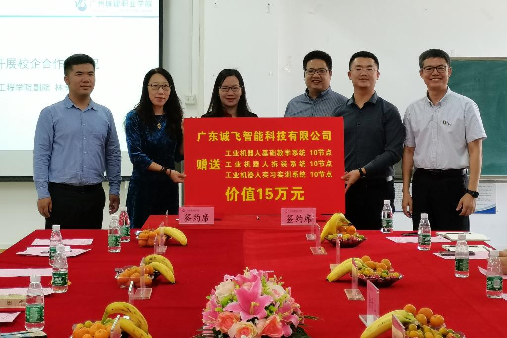 随后,广东诚飞智能科技有限公司向公司捐赠了“慧阳工业机器人基础教学系统V1.0”等软件共30节点,价值15万元。邀请了广东海川机器人有限公司、广州亦高电气设备有限公司、广东万联能源有限公司等新加盟的合作企业现场签署校企合作协议。