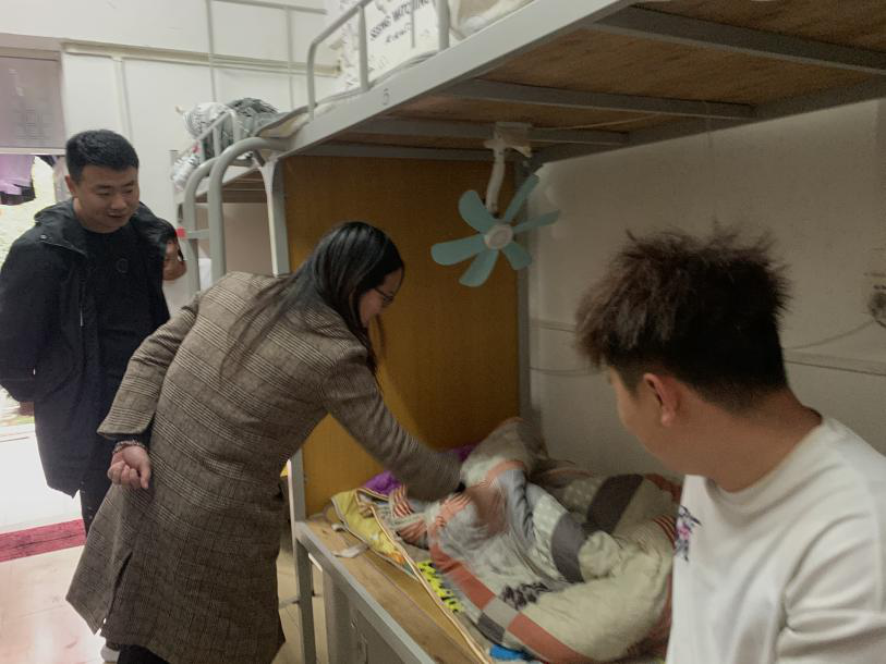 本次宿舍卫生检查是未提前通知的,在同学们没准备的情况下,先从19栋2楼开始,对员工宿舍逐间地走访检查,特别关注窗户积尘、阳台积水、衣物摆放、宿舍垃圾清理等问题。经检查发现,大部分宿舍卫生状况较好,基本做到了勤开窗多通风,勤卫生大扫除,宿舍内地面、桌面干净整洁,被褥衣物叠放整齐,其余生活用品摆放整齐有序。但是,发现个别宿舍内部封闭不通风,空气质量较差,或床铺不整洁,桌面上的物品摆放杂乱,地面拖鞋摆放混乱,卫生间地面较为脏乱等。针对宿舍卫生较差的,当时就及时指正并教育,督促其改正问题,改善了宿舍环境。另外,李副经理提醒同学们近日要关注天气变化,及时增减衣服,注意防寒保暖,同时要做好个人防护,预防流行病。