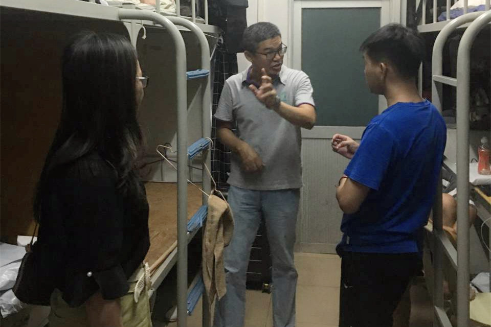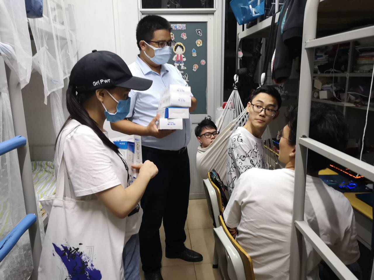 当晚,公司领导班子协同辅导员走访员工宿舍,了解员工住宿环境、员工返校后的动态、是否需要帮助,并对员工作了防疫安全提醒。