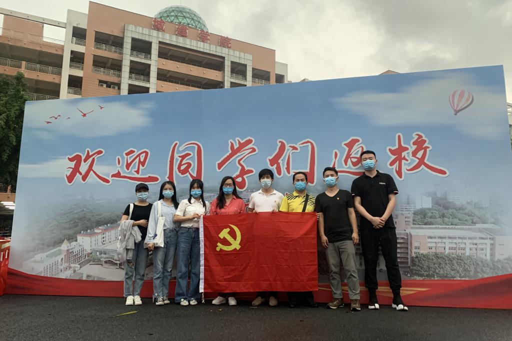 党员教师乔琛、杨美嫦、骆建祥站在返校工作第一线,检测员工体温、疏导现场秩序、引导员工消毒洗手和戴好口罩、查验员工信息包括健康码等。符合进校条件的员工按照指定路线进入人文艺术楼一楼通道办理返校复课手续。现场,给每一位员工发放公司专门准备的“防疫健康包”,让员工深切感受到公司的温暖。党员教师各司其职,坚守岗位,从早上8点一直持续到晚上6点,连续工作10个小时,积极为复学助力,展现党员应有担当,全力绽放党员教师的风采,用实际行动在员工复学路上为党旗争光添彩。