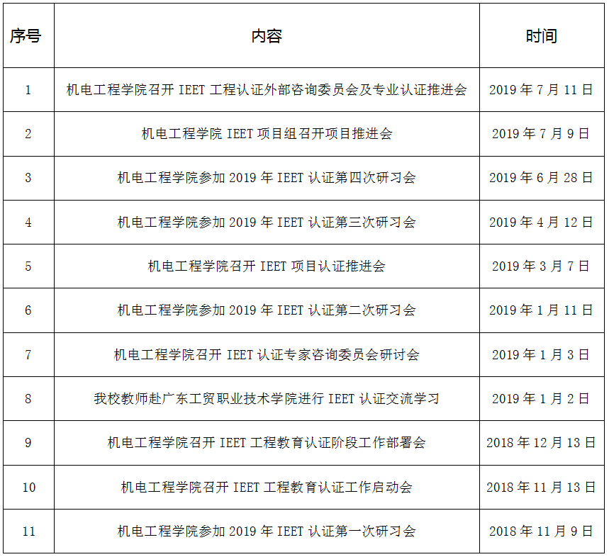 IEET认证工作项目主要进程
