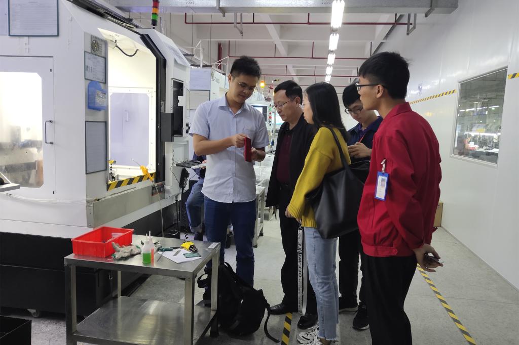 在公司经理吴森武陪同下,两位老师深入员工实习岗位现场进行考察,并与公司16数控技术专业实习员工进行座谈,了解同学们在企业工作和生活的情况,细心解答、解决他们在工作和生活中遇到的问题。期间,公司相关部门领导对同学们在工作中的表现给予充分肯定,高度赞扬了公司毕业生的人才培养质量。