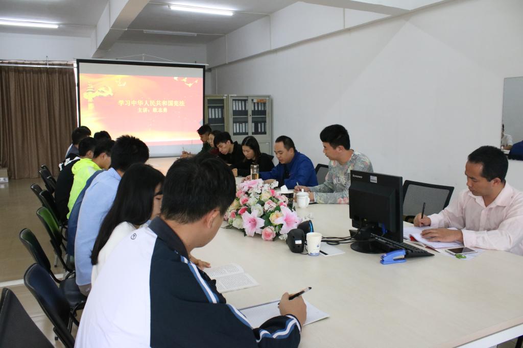 会上,欧志勇书记与到会同志共同学习了宪法内容,他强调,党员同志,要忠于中华人民共和国宪法,维护宪法权威,履行法定职责,忠于祖国、忠于人民,恪尽职守、廉洁奉公,接受人民监督,为建设富强民主文明和谐美丽的社会主义现代化强国努力奋斗。