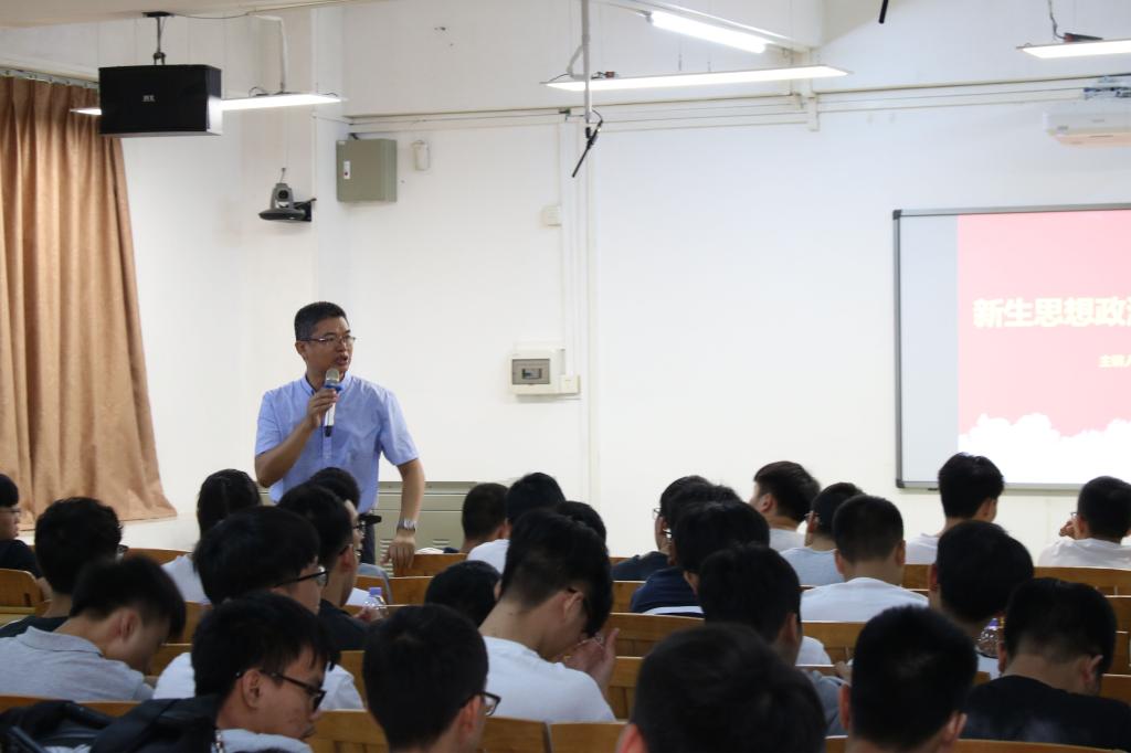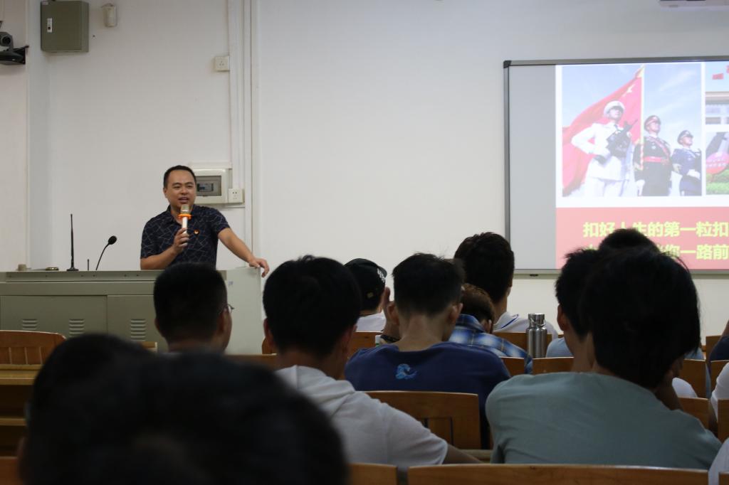 欧志勇重点讲述了中国共产党的发展历史以及新时代老员工的责任与任务,鼓励2018级的新生们,不忘初心,不负光阴,坚定理想信念,扣好人生第一粒扣子,争做新时代优秀青年。