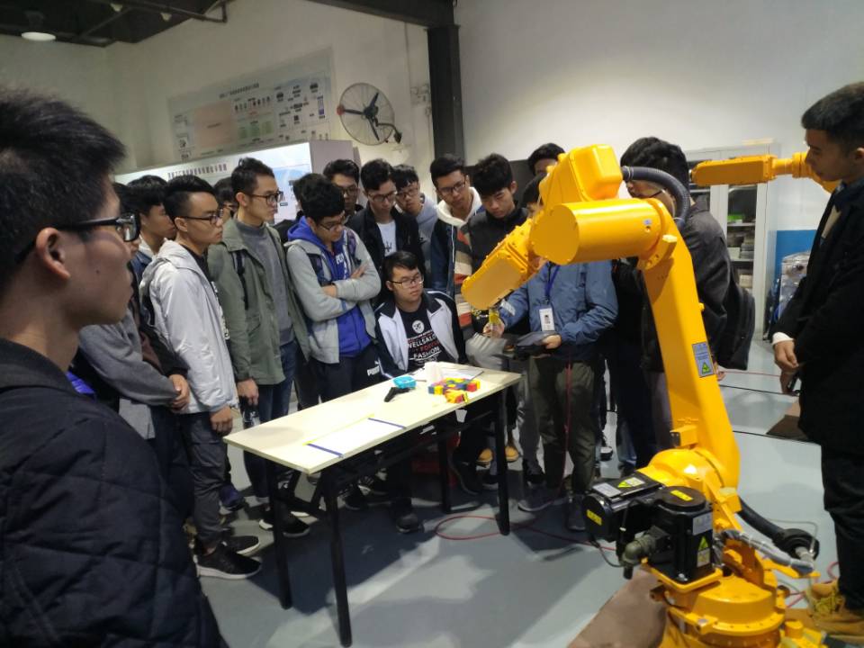 学习团于当日09:30—10:30 参观了孵化器的3D打印展厅、智能制造展厅,了解了3D打印等新技术的发展程度。之后,在人事经理陈锐鹏带领下,访问了新鹏机器人技术有限公司。据悉,佛山市新鹏机器人技术有限公司是专注于工业机器人研发、制造及应用的国家高新技术企业、国家重点项目支持企业。拥有1000多平方米环境优雅的研发中心和7700多平方米设备完善的生产车间。是江苏汇博机器人技术股份有限公司全资子公司,国家863计划和发改委智能制造专项项目承担单位。
