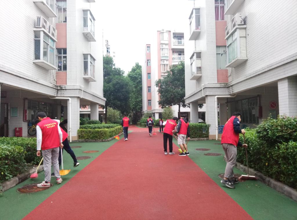 活动当天,机电青联分会组织所有志愿者在三区宿舍8号们处集合,冒着毛毛细雨,同学们在清洁阿姨的带领下,有条不紊地开展着志愿活动。同学们两人一组,对宿舍楼下花坛的垃圾和塑胶过道上的落叶进行仔细的清理,并有序地摆放好楼下自行车。