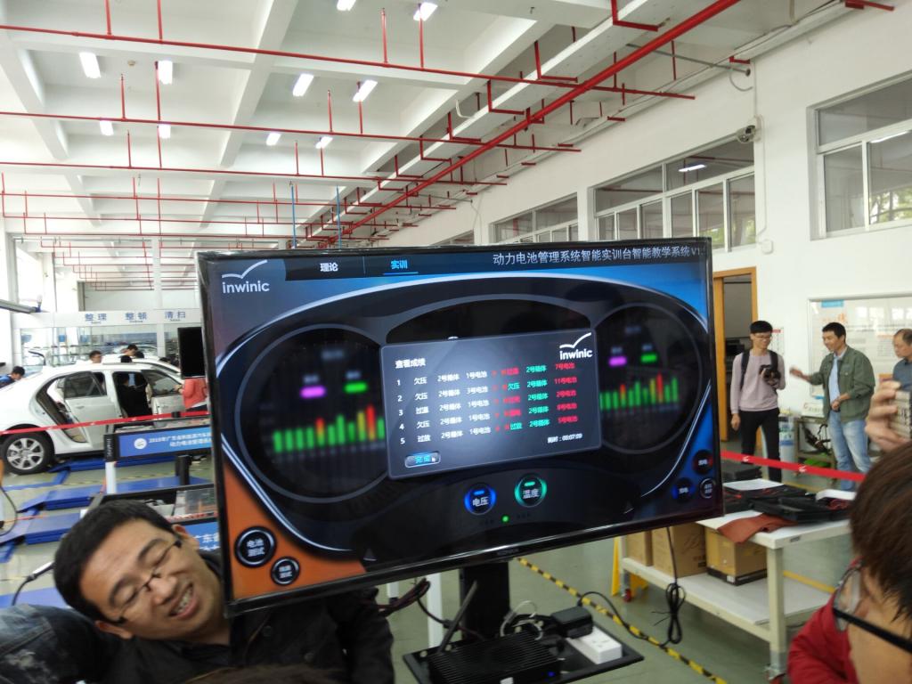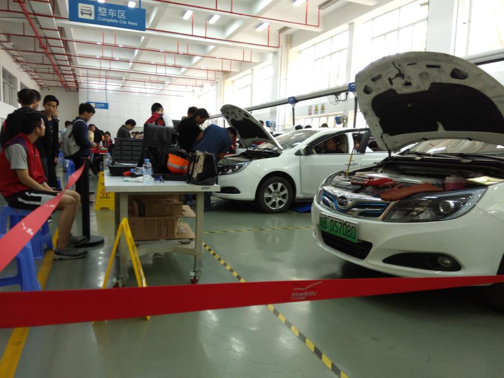 由于缺乏对比赛设备的了解,刘主任努力与深圳新动力教育科技有限公司争取设备实操的机会,最终,在相关企业的支持下,为我们提供了比赛用车“比亚迪E5”用以实操训练。