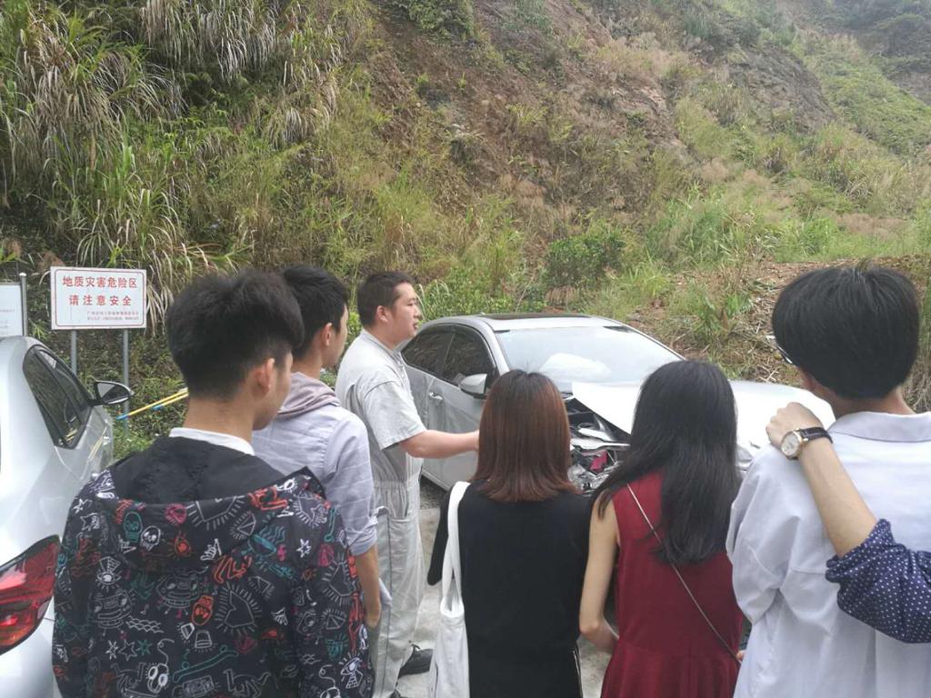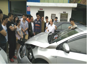公司售后维修主管彭亮辉、高级维修工谢锐侦,从维修企业的角度分别为同学们讲述了该店对事故车的接车、评估、拆检、维修、验车、交车等流程,以及重大事故车的拆检和钣金维修工艺与费用评估等专业技能。
