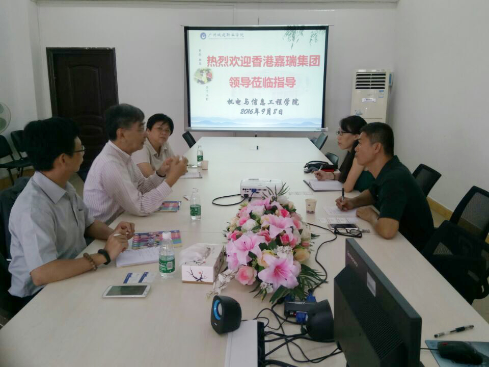 机信公司经理王锦红、副经理林勇在建工机电楼307A热情接待了嘉瑞集团领导,双方就后续合作的主要方向进行探讨,主要达成三点共识:一是从毕业生顶岗实习、就业开始,以建立校外实习基地、教师驻企工作站为抓手,加强交流,深化合作。二是依托香港理工大学社会背景,在企业社会服务方面予以拓展,短期内从解决部分企业技术问题开始,促进师生技术成果研发与专利成果转化。三是面向未来,以行业企业转型升级为契机,以提升人才培养质量为目的,与行业企业共建现代学徒制培养及特色公司。