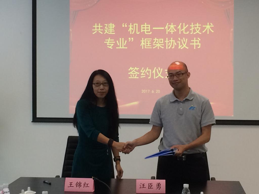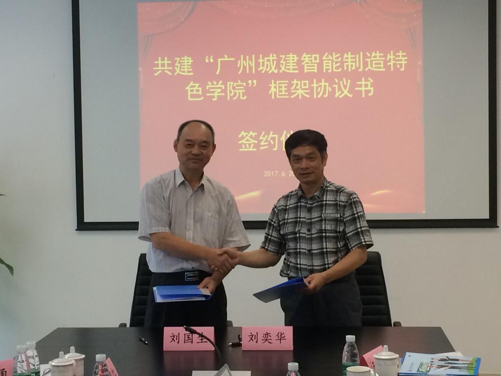 随后,刘董事长与刘教授代表校政企双方分别签署了共建“广州城建智能制造特色公司”及“广州城建公司装备制造类专业”战略合作框架协议书;王经理代表公司与汪副总经理签署共建“机电一体化技术专业”战略合作框架协议书;刘董事长与王经理代表公司向刘教授颁发装备制造类专业指导委员会主任委员聘书,王副董事长代表公司向刘教授颁发客座教授聘书。