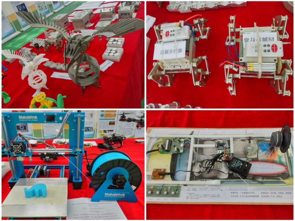 本次成果展作品主要从员工课堂实践教学、实训活动和综合实践活动中制作的作品中筛选而出,共收集先进制造、汽车、信息技术类11个专业实训指导书、教程和实习报告102本,图纸53张,实物作品125件,实物作品包括3D打印、智能机器人、数控加工、汽车控制、软件开发、网站开发、图像设计等,另有相关视频10个,设计展板26块。