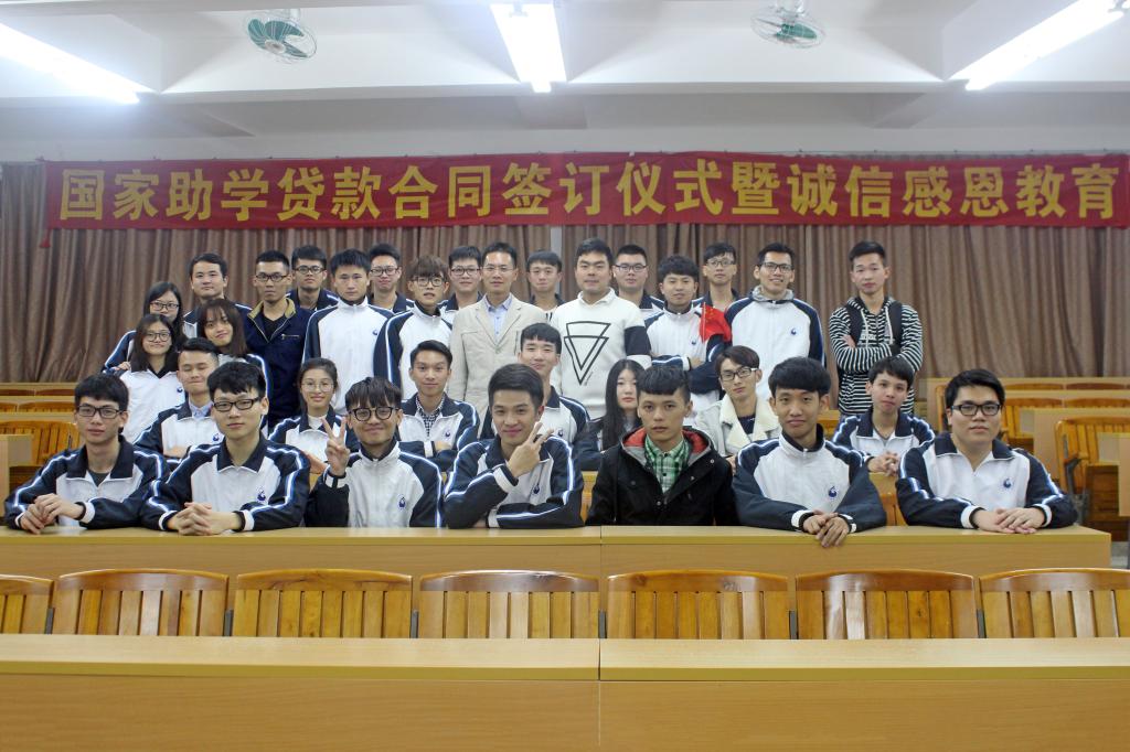 为了关爱公司学子,激励广大学子刻苦奋斗。11月10日晚,机信公司在信工财经楼319课室举行了国家助学贷款合同签订仪式暨诚信感恩教育会议。参加此次会议的有机信公司副经理王鲜、学工办老师谢凯、赖增哲以及全体贷款员工。