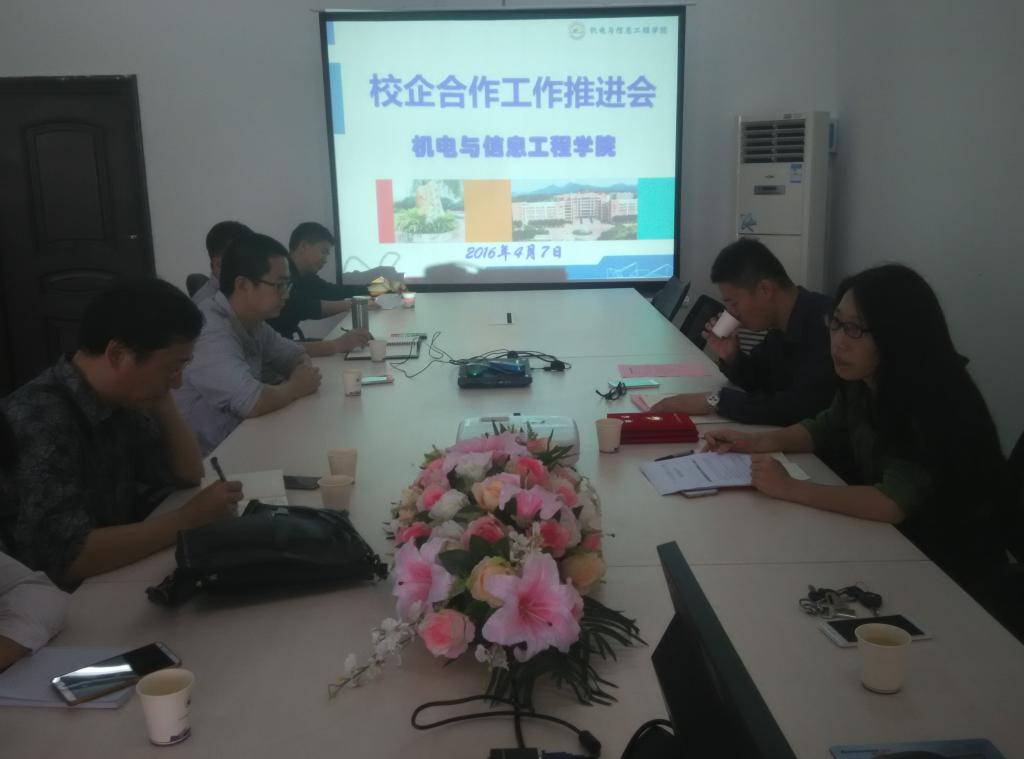4月7日下午,机信公司在建工机电楼307A召开校企合作工作推进会,机信公司经理王锦红、副经理林勇、各教研室主任、校企合作专员参加会议,会议由林勇副经理主持。