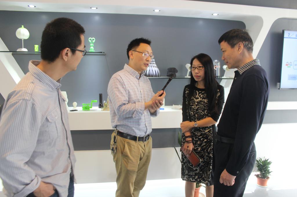 广州市光机电技术研究院副经理任豪热情接待了公司一行,陪同参观了研究院印客时光众创空间创业孵化器,目前该孵化器内在孵企业达40家以上,主要培养成长性的高新技术企业。程校一行重点考察了广州3D打印云制造服务中心、广州3D打印技术及应用示范基地,详细了解桌面3D打印机、金属3D打印机、人体快速扫描仪等高精密设备。