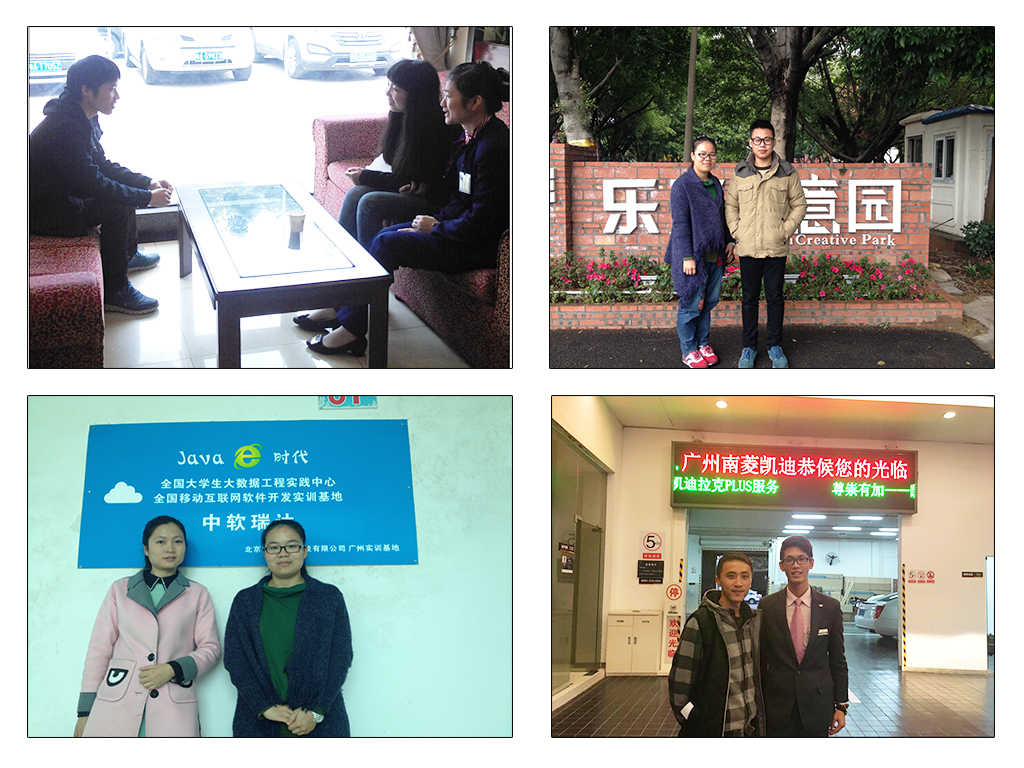 2015年12月10日上午,林勇副经理、汽车教研室主任刘桂光、辅导员苏伟兰、蔡昊老师到广州长昕汽车销售有限公司走访,亲切看望2013级顶岗实习员工,了解他们在公司的工作和生活情况,并和企业负责人就员工集中顶岗、订单班签订和校企深度合作展开洽谈。12月11日,辅导员王博文老师走访广州北汽幻速4s店,看望顶岗实习员工和调研。12月14日辅导员蔡昊老师走访广东君乐汽车贸易有限公司、广州市南菱凯迪汽车有限公司和广东物资君豪汽车贸易有限公司,分别看望09级、10级汽车专业毕业生,给他们带去公司领导的亲切问候,了解他们毕业以来的工作情况,和企业负责人座谈,了解企业对公司毕业生的评价和人才培养方面的建议;11月23日,辅导员王博文老师分别到广州启微科技有限公司和广州市天河金益宾馆汉庭酒店天平架店走访,看望往届在岗毕业生,了解毕业生对所学专业反馈给在校师弟师妹的建议。同时听取企业负责人对公司员工实习表现的评价、课程教学及人才培养方面的建议。12月29日、30日,辅导员苏伟兰老师分别走访北京中软瑞达科技有限公司、广州合优网络科技有限公司、广州源慧信息科技有限公司和广州道先网络科技有限公司,看望11月底刚刚参加顶岗实习的毕业生,了解员工在企业的适应情况,就他们在公司工作和生活遇到的问题与公司负责人沟通协调解决,让员工安心在企业实践锻炼。12月31日、2016年1月6日王博文老师分别到广州翰信通信科技股份有限公司清远项目基地和中国移动清远分公司、广州中诺能源集团和广州慢行网络科技有限公司调研并看望在岗毕业生。2016年1月4日,软件技术教研室汤锋主任、辅导员苏伟兰、蔡昊老师送17位13级的毕业生到广州市扬海科技有限公司参加集中顶岗实习,并探望11级、12级的往届毕业生。与公司负责人洽谈员工集中顶岗、人才培养、校企合作等事宜。