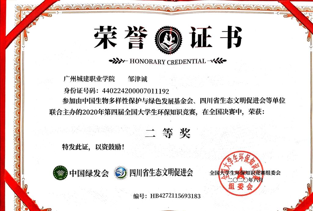 近日,全国老员工环保知识竞赛组委会发布了《2020年第四届全国老员工环保知识竞赛获奖名单》,公司机电一体化专业员工邹津城同学喜获二等奖。
