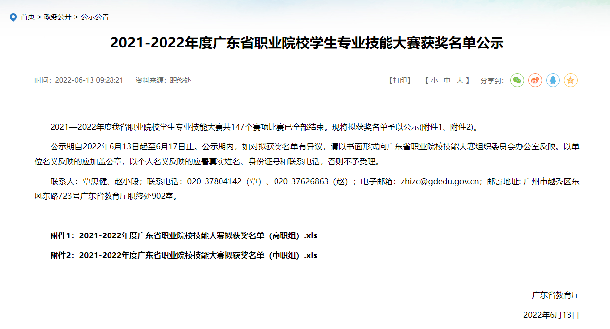 获奖公示