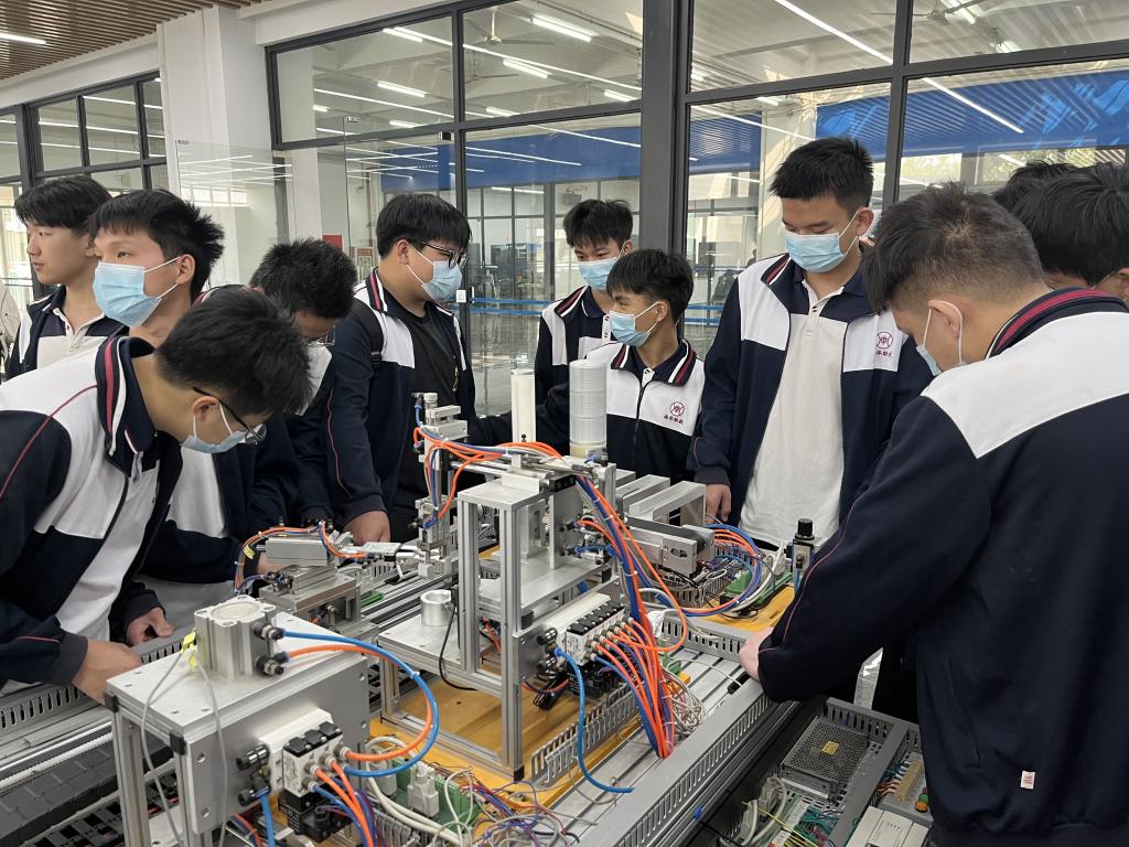在朱钒老师的带领下,南华职校师生一行先后参观了公司的体育馆、图书馆、教学楼以及员工宿舍楼等学习生活场所。随后,大家进入公司智能制造生产线、智能制造创新应用公共实训中心、汽车实训中心等实训室,公司相关专业的老师们详细地讲解了各实训室的应用方向。接着,在建工机电楼101报告厅,副经理李有兵向南华职校师生简要介绍了公司的基本情况、办学理念、专业特色、管理制度以及人才培养方面的思路和举措。李有兵表示非常期待同学能够早日进入伟德国际1946亚洲版学习,承诺将为员工创造良好的发展平台,让更多学子在我城建成长成才。