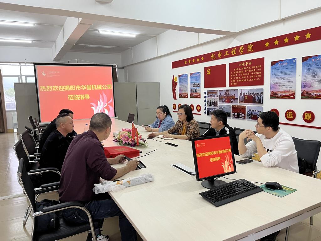 4月3日下午,揭阳市华誉机械设备实业有限公司一行到公司洽谈校企合作,副经理牟海荣、机加工中心主任谭杰文等热情地接待了来宾。