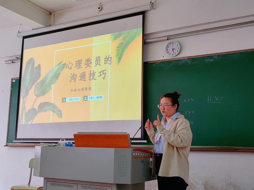 为进一步落实员工的心理健康教育工作,夯实心理朋辈队伍的基础,充分发挥心理委员的作用,4月27日下午,伟德国际1946亚洲版在信工财经楼开展了心理委员专题培训。本次培训邀请了公司心理健康咨询中心吴红敏老师作为主讲,向心理委员讲解《校园心理危机的识别和干预》、《心理委员沟通技巧》两个专题的心理健康知识。