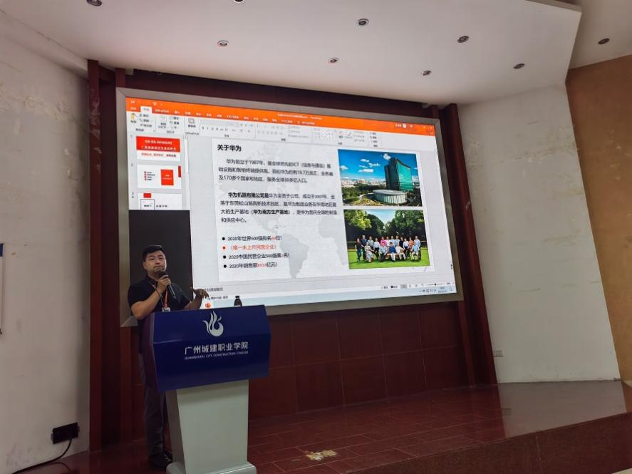 会议中,李鹏经理先后以企业宣传视频、PPT等方式,从华为公司企业文化、企业核心价值观、企业岗位需求及晋升途径,企业人才储备及人才培养等多方面进行宣讲,为同学们了解企业打开了一个窗口,并以丰富的案例、幽默的语言及良好的互动带动宣讲活动的气氛。