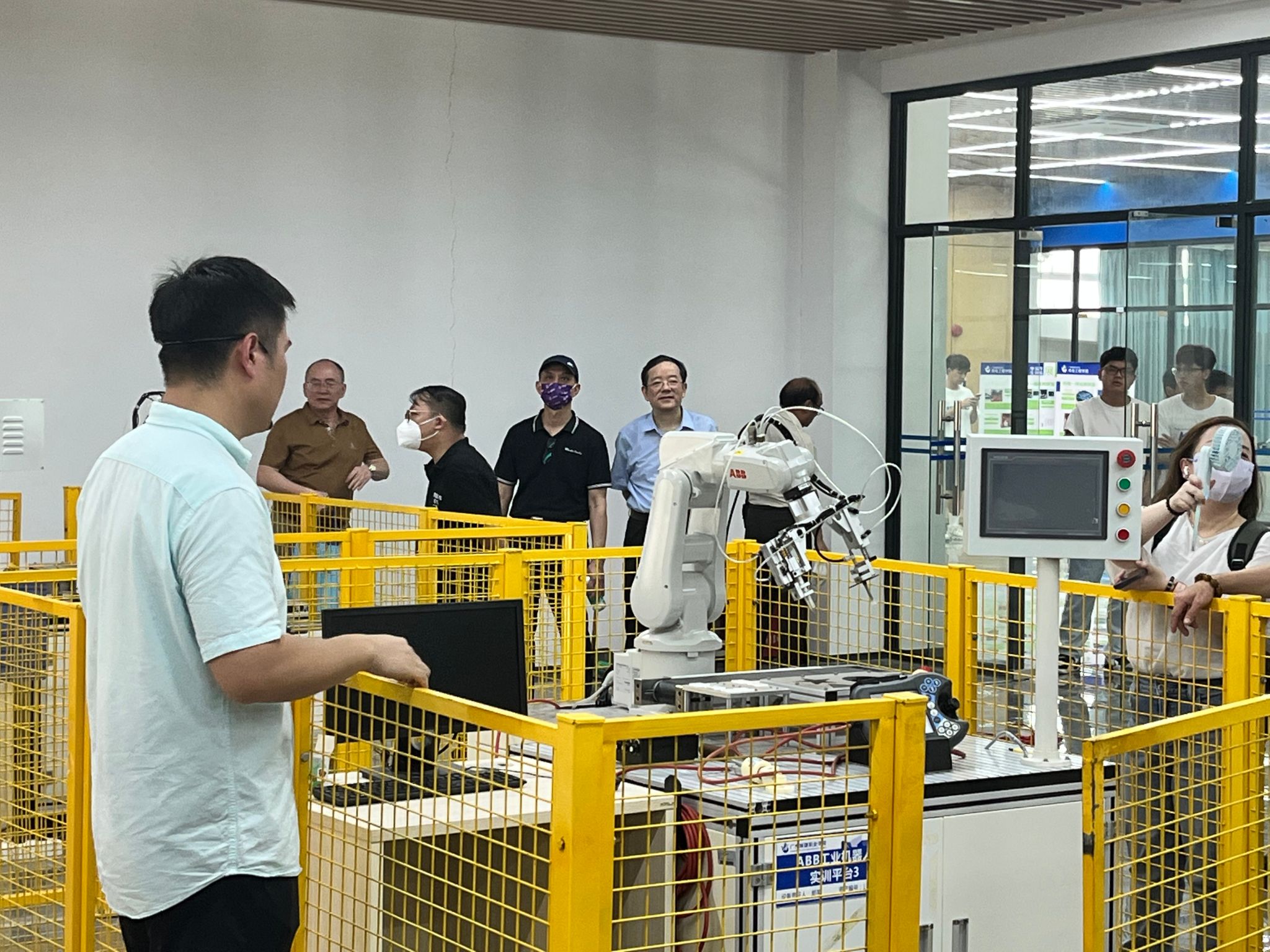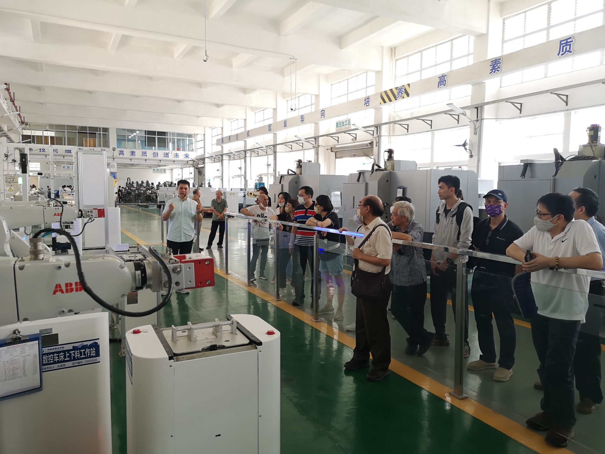 粤澳高等职业教育交流团来到公司先进制造实训基地、高标准柔性化智能制造生产线等实训场所。周立求向大家介绍了公司的基本情况、办学理念、专业特色、管理制度以及人才培养方面的思路和举措。随后,公司相关专业的老师为来宾们详细地讲解了各实训室的应用方向。周立求表示,一直以来,公司高度重视教育面向粤港澳大湾区,走向国际化发展,机电一体化技术专业是公司第一个获得IEET国际认证的专业,以及公司获得3项未来技术技能与人文交流人才国际训练基地项目立项。公司将继续支持和推进更多专业、教学模式等向国际化发展,希望未来与澳门的高职院校有多元化的深化交流合作。