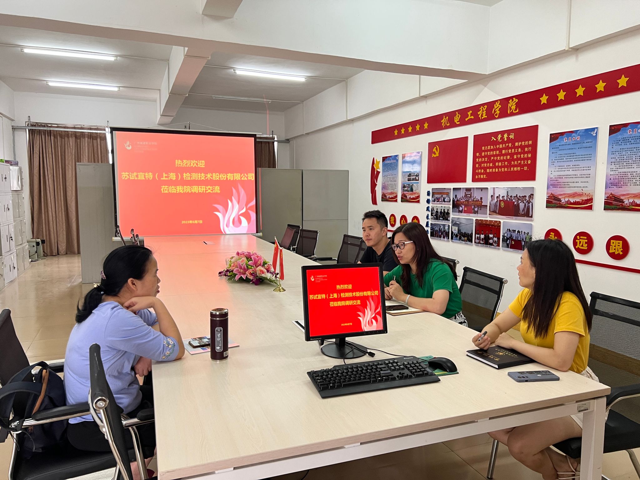 6月9日,苏试宜特(上海)检测技术股份有限公司一行,到公司就“厂中校”项目开展交流研讨。副经理李奕萍热情的接待了来访嘉宾。