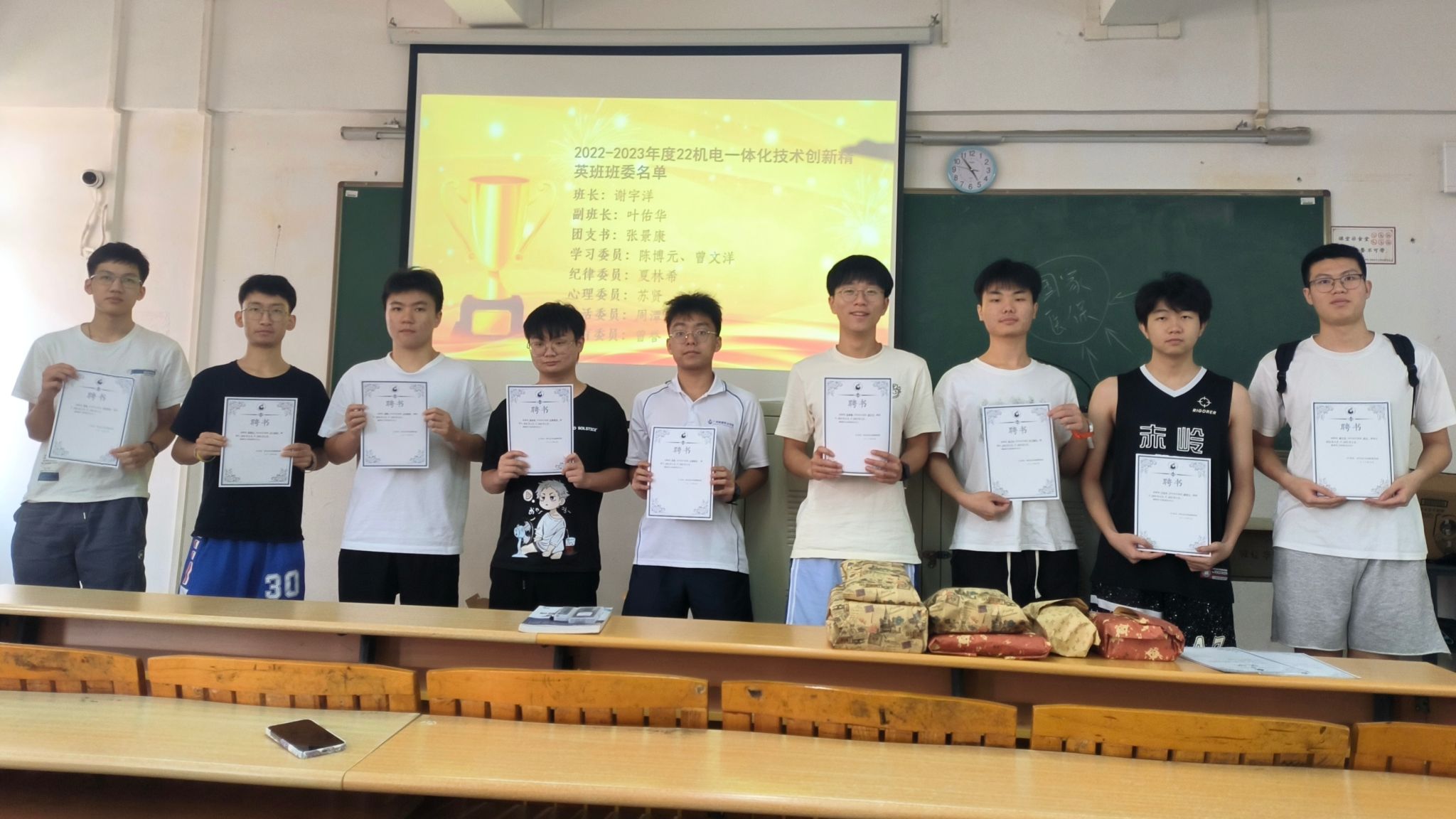 为增强班级凝聚力和向心力,引领同学们“安全过暑假,积极向大二”,激励员工们为新学期的学习树立目标做好计划,彰显班级团结向上风貌,22级机电一体化专业和智控2班于17周,在二教教学楼召开大一第二学期期末班级总结大会。本次班会由辅导员林秋鸿老师主持,从“考场纪律”、“暑假安全”、“表彰颁奖”三个方面,总结期末,展望未来。