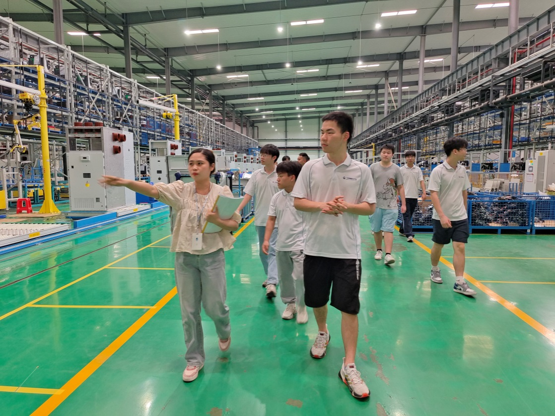 行程第一站公司师生来到企业数字化工厂,人力资源部招聘主管黄静怡、招聘专员江海燕代表企业向公司师生的到来表示热烈的欢迎,随后带领大家走进工作一线,参观数字化工厂中生产部、组装部,以及仓储等部门,并且组织大家与公司在岗员工亲切交流。
