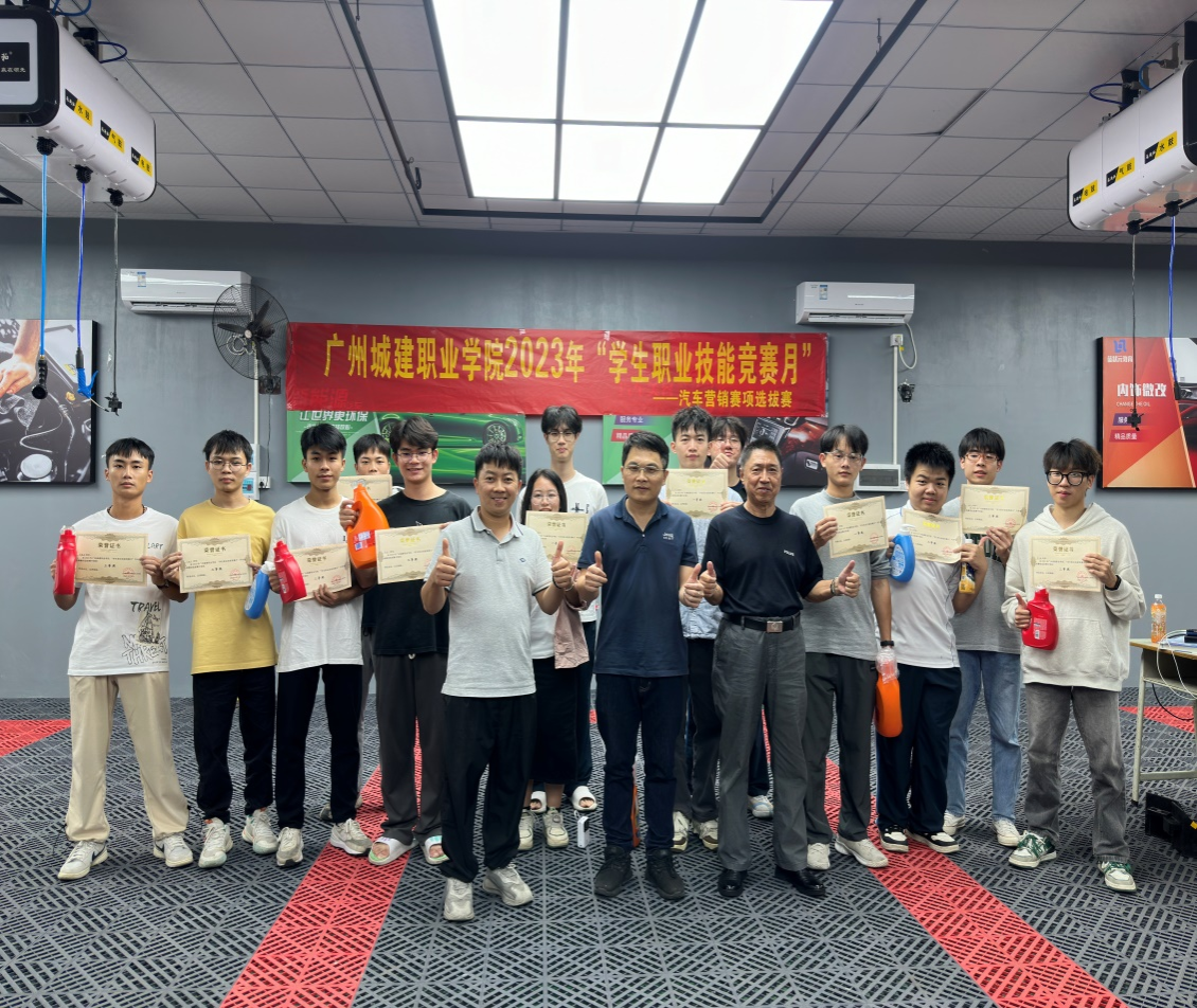 实践出真知,竞技展风采。10月12日下午,2023年广东省职业院校技能大赛高职组“汽车营销”赛项技能训练选拔赛在天马汽车实训中心汽车美容改装实训室举行。共有来自汽车专业的20名选手参加了此次选拔赛。汽车教研室夏长明、陈伙南、徐浩荣三位教师担任此次选拔赛的评委。