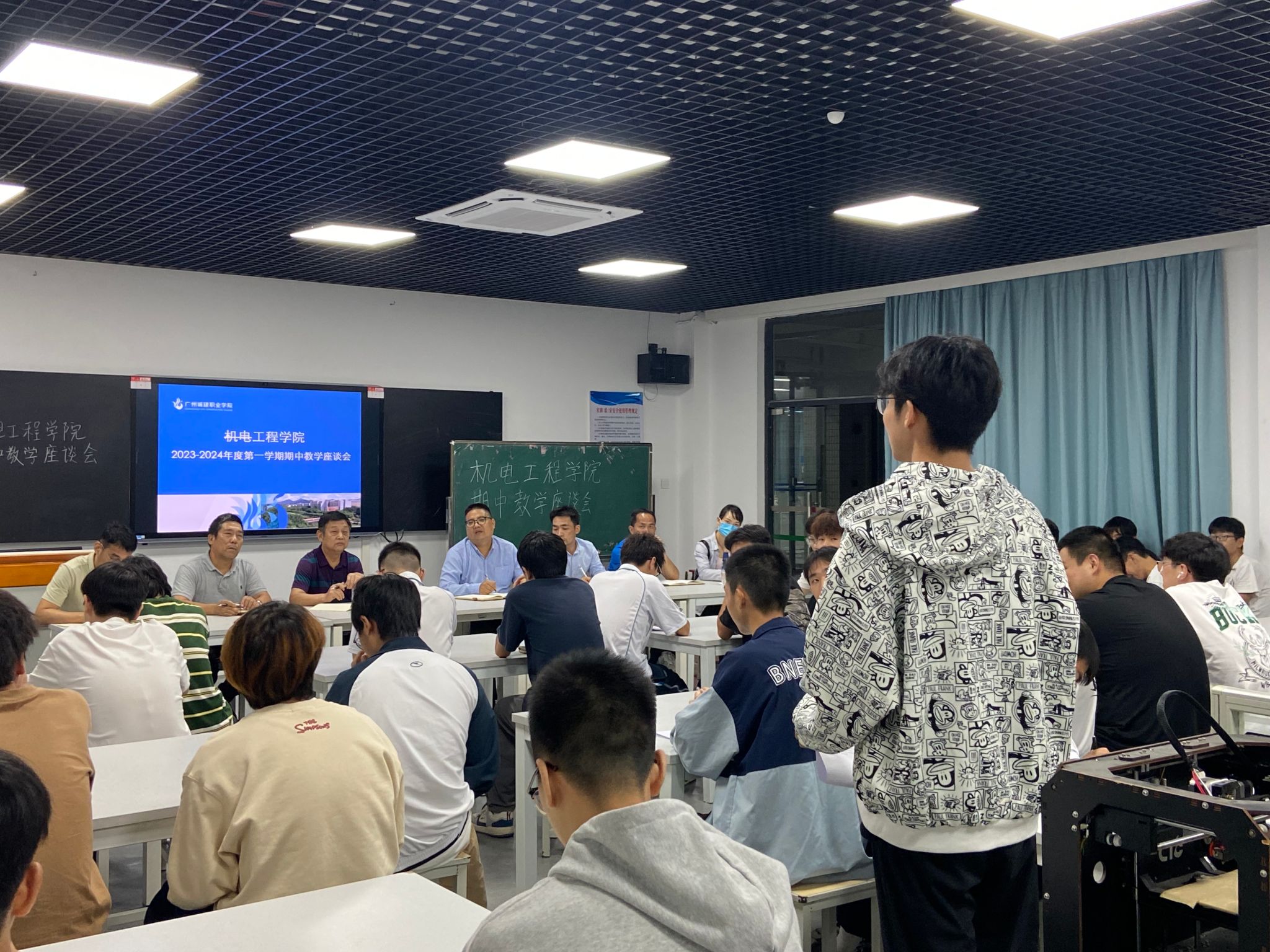为了加强学风建设,了解员工对公司、公司教学工作的意见和建议,听取同学们对改进和加强教学工作的具体要求,及时解决员工在校学习和生活中遇到的困难和问题,根据公司《关于开展2023-2024学年第一学期期中教学检查与质量诊改工作的通知》的相关工作安排,伟德国际1946亚洲版于2023年11月9日在建工机电楼B座205D会议室召开期中教学师生座谈会。会议由教学副经理李有兵主持,各教研室主任、辅导员代表和各班员工代表信息员参加了会议。