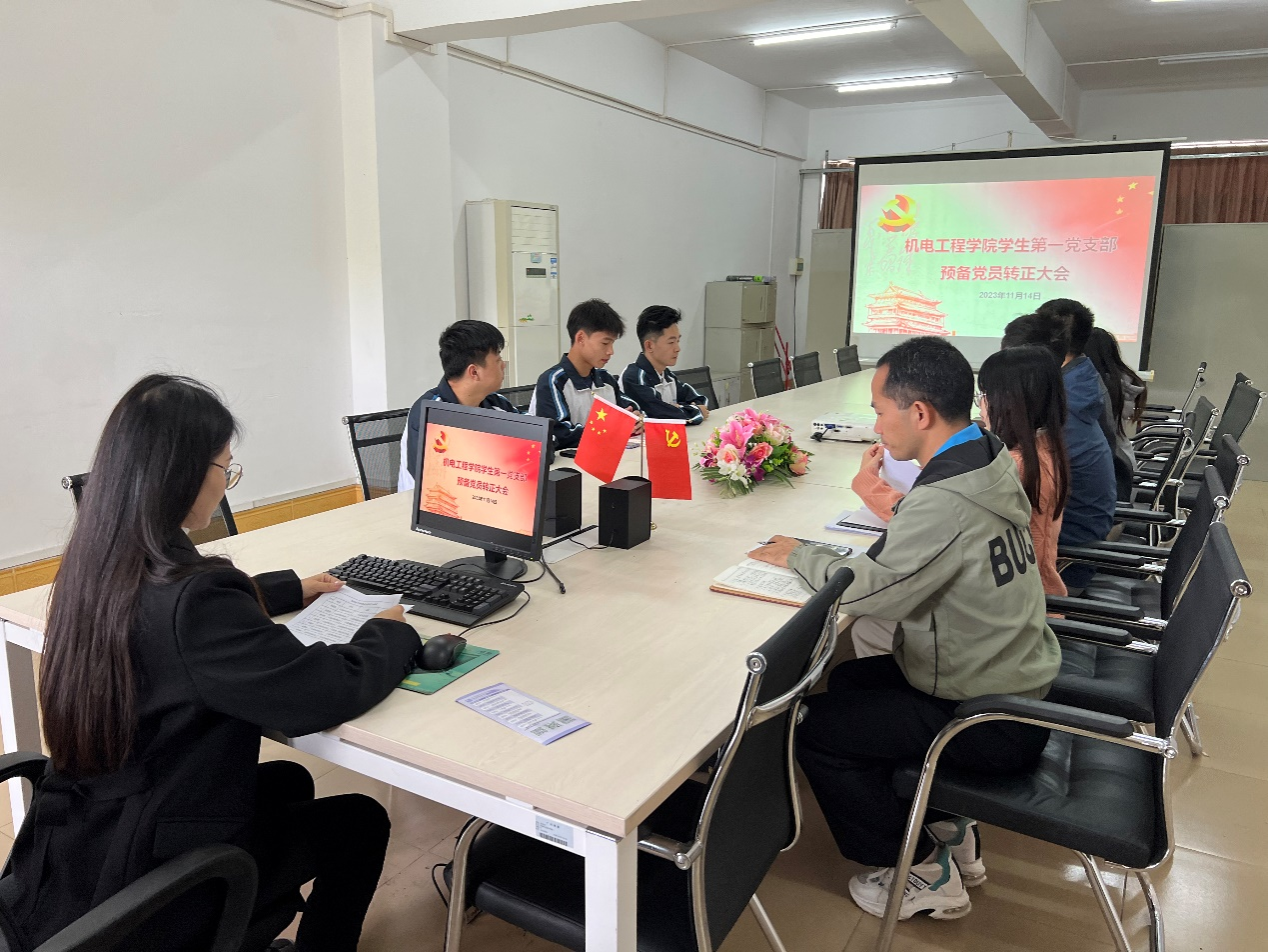 首先,袁燕娇同志汇报正式党员、预备党员的与会情况,对本次会议流程进行简要介绍。随后,会议围绕陈泽中等4名预备党员成为正式党员问题进行。陈泽中等4名同志依次汇报自己预备期间的思想、学习、工作、生活作风等情况,提出转正申请,并表明自己的态度和决心。