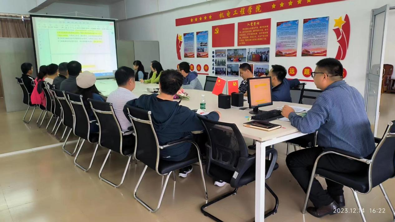 会上、李有兵分别从课程选择、项目选择、教案撰写、实施报告设计、视频拍摄及注意事项等方面进行了专业讲解。参会教师认真学习记录并进行充分讨论,深入思考如何将所学知识融入日常教学。李有兵强调,参赛团队要认真研究参赛文件,理解和领会文件内涵要求,并对参赛作品进行打磨提升,总结特色,打造精品,要持续性加强教师教学能力大赛队伍建设。