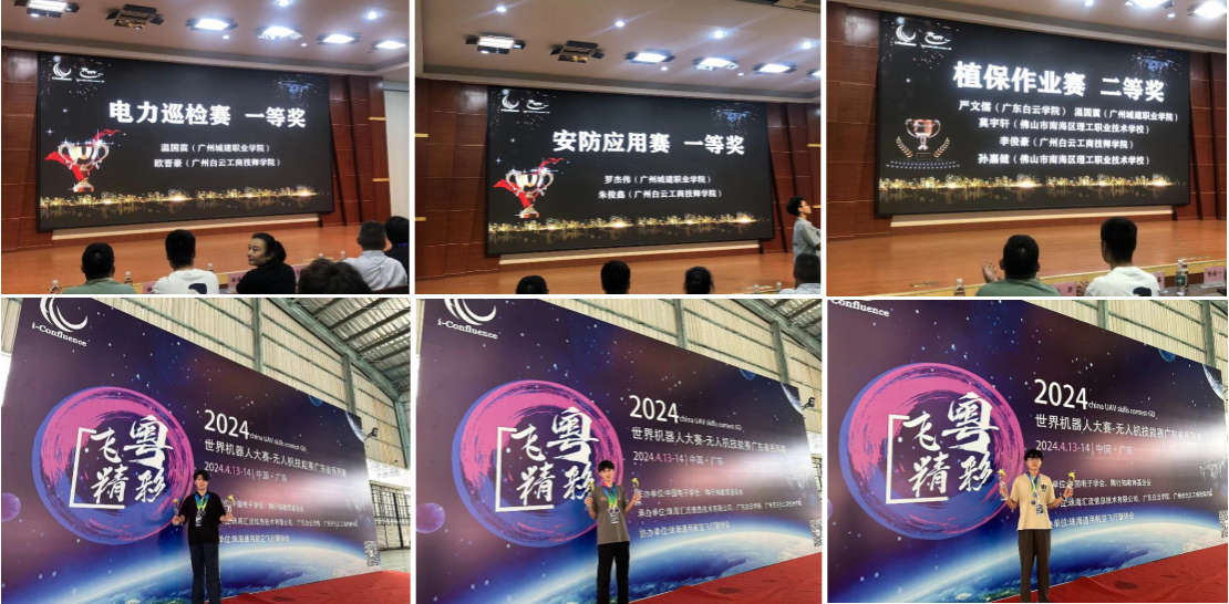 公司院无人机应用技术专业学子温国震、罗杰伟、王龙汪3位选手不畏强手,勇于挑战,依靠扎实精湛的操作技术和良好的职业素养荣获一等奖2项、二等奖1项、三等奖1项的佳绩。