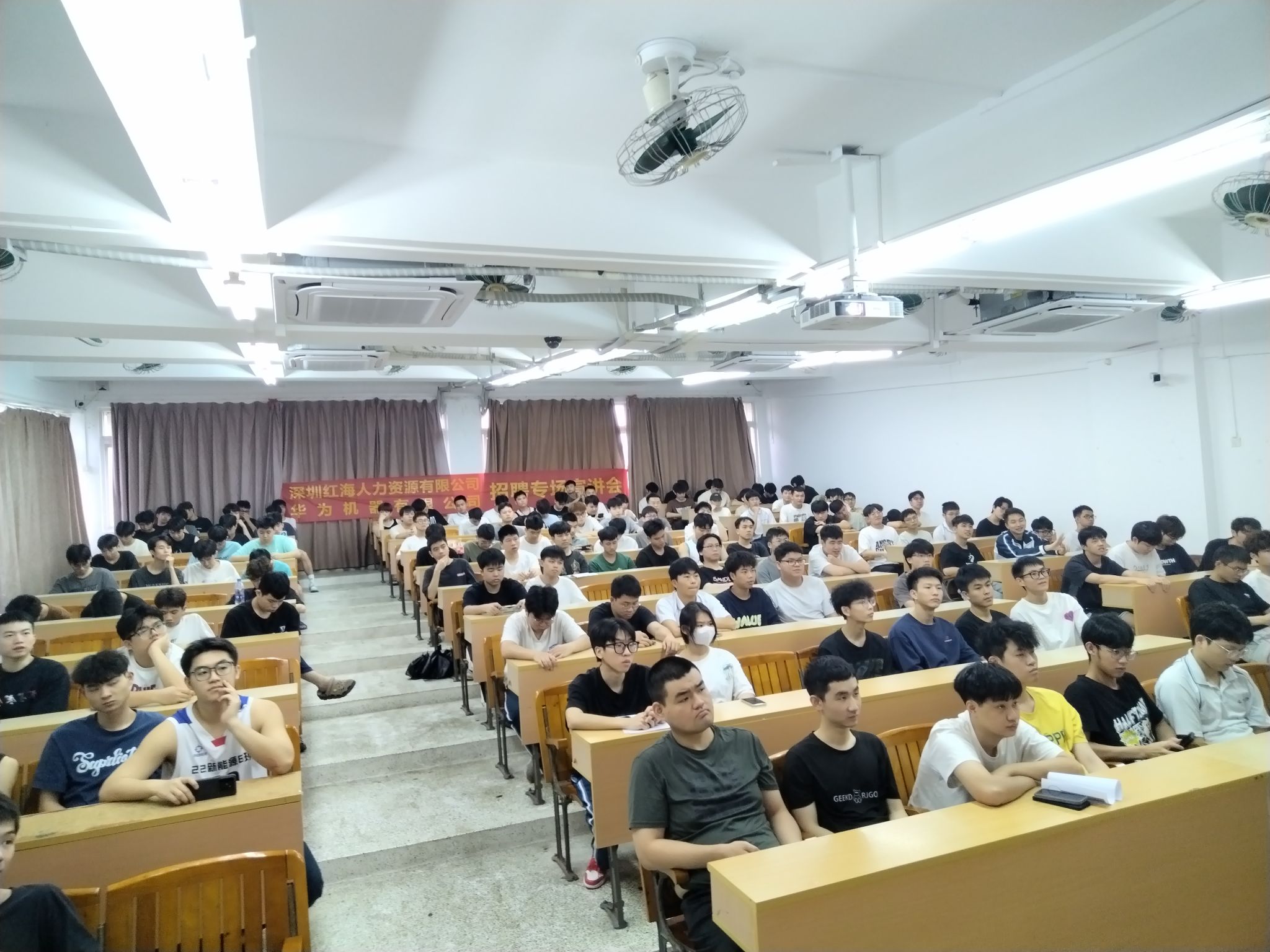 在企业宣讲环节,华为红海人力集团李鹏总监介绍了华为机器有限公司的概况、招聘岗位、福利待遇、晋升通道、企业优势等信息,并与员工进行现场互动,对员工关心的问题,做出了详细的解答。现场他还向同学们分享了往届师兄进入华为机器有限公司的实习成长故事,鼓励同学们积极参与面试选拔,尽早投入到专业技能的锻炼当中。本场宣讲会共吸引152名员工参加,目前,已有近八十名员工填写在线简历,表达想进入华为机器有限公司实习的意愿。