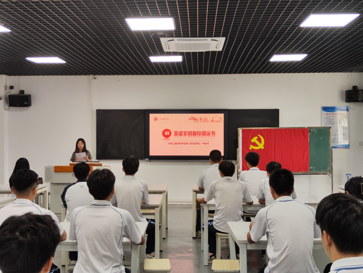 会上,全体同志重温了入党誓词,再一次表明了为共产主义事业奋斗终身的决心。林秋鸿宣读《2024届毕业生党员文明离校倡议书》,希望各位毕业生党员能够不忘初心使命,永葆党员本色,在社会奉献中证明自身的真理性,发挥先锋作用,牢记为人民服务宗旨,不断提高自身党性修养;也希望大家在劳动中创造幸福,开拓进取,为全面建设社会主义现代化强国贡献智慧和力量。毕业生党员代表陈泽中发言,表达了对母校的感恩之情和未来将不忘初心、坚守信念,砥砺前行。将来,做怀揣梦想和脚踏实地的人,做拥有智慧、富有激情的人,做德才兼备、敢挑重任的人,以青春之名赴时代之约。