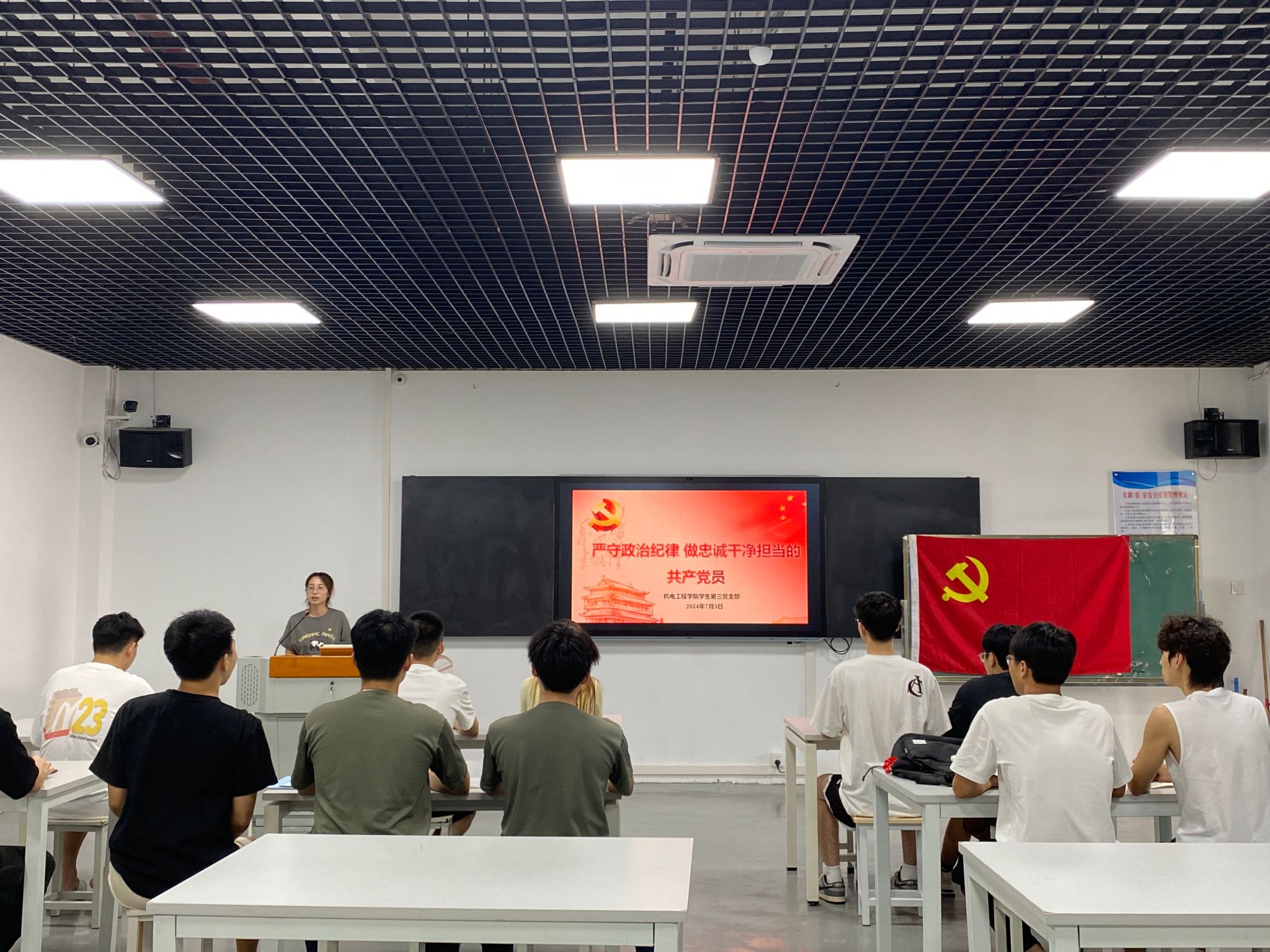 为切实推动党纪学习教育走深走实,7月3日,伟德国际1946亚洲版员工第三党支部书记林秋鸿以“严守政治纪律,做忠诚干净担当的共产党员”为主题,在建工机电楼205D为支部党员讲授党纪学习教育专题党课。