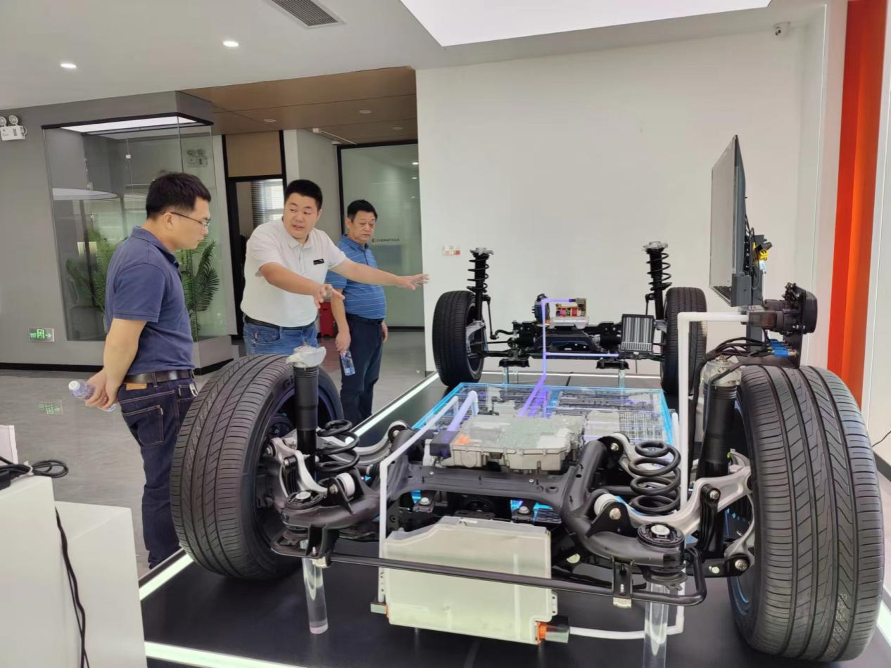 在公司服务总监谢坤的陪同下,大家参观了公司的研发中心、产品展示大厅及智能生产车间。通过实地观察,大家对车拉夫在汽车维修教学系统、智能网联汽车教学产品以及新能源汽车技术等方面的研发成果给予了高度评价。